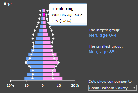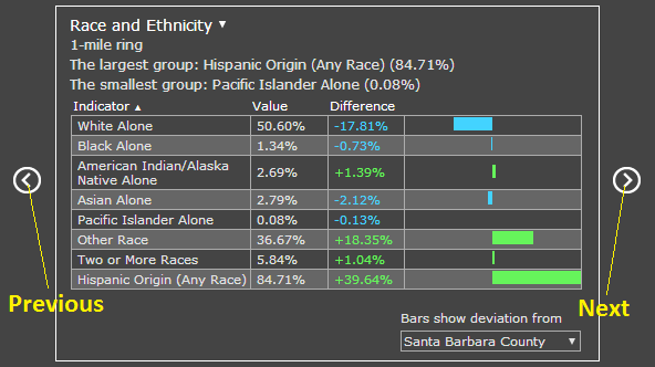 Infographic provides a graphic layout with the information about your study area. Four types of infographic are available: One Variable, Related Variables, Age Pyramid and Tapestry.