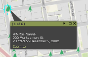 Info windows are used to display information about a particular location on the map. The standard info window allows you to set the title and content of the window. At version 2.3, the Popup class, an implementation of InfoWindow was added to provide the following additional capabilities: