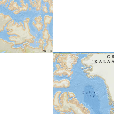 Previously, stylesheets for most components and widgets in the API were dynamically appended to the DOM. This resulted in having to use !important to override default styles. Because of this change, apps using version 3.2 of the API must now include a link to esri.css. Refer to the conceptual help on using the API's CSS files for additional information. If this CSS file is not included with apps using 3.2, there will be several display issues. The most common is that tiled services do not display correctly, as shown in this screen shot: