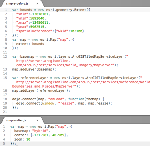 Two new map methods, getBasemap and setBasemap, make switching basemaps easy. setBasemap accepts one of the strings mentioned above that corresponds to an ArcGIS.com basemap. If map.options.basemap was used to initially set the basemap, or the map's basemap was set with setBasemap, getBasemap will return the string that corresponds to the map's current basemap.